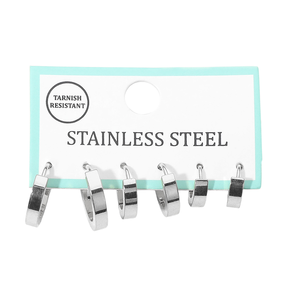 3Pairs - Stainless Steel Flat Huggie Hoop Earring Set