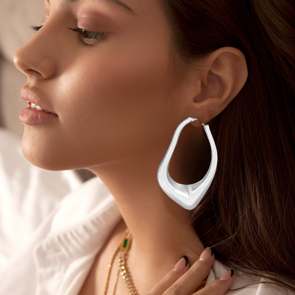 Rhinestone Embellished Enamel Metal Hoop Earrings