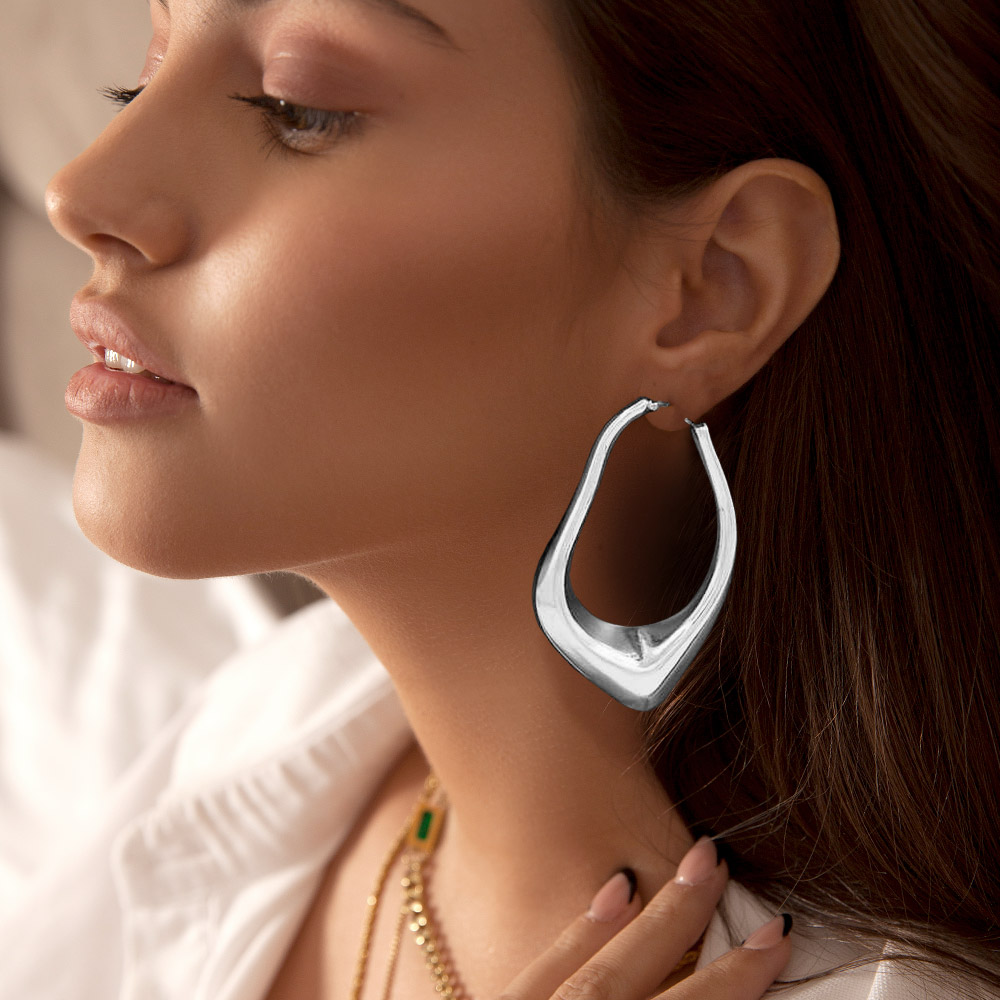 Silver Dipped Double Loop CZ Stone Accent Stud Earrings