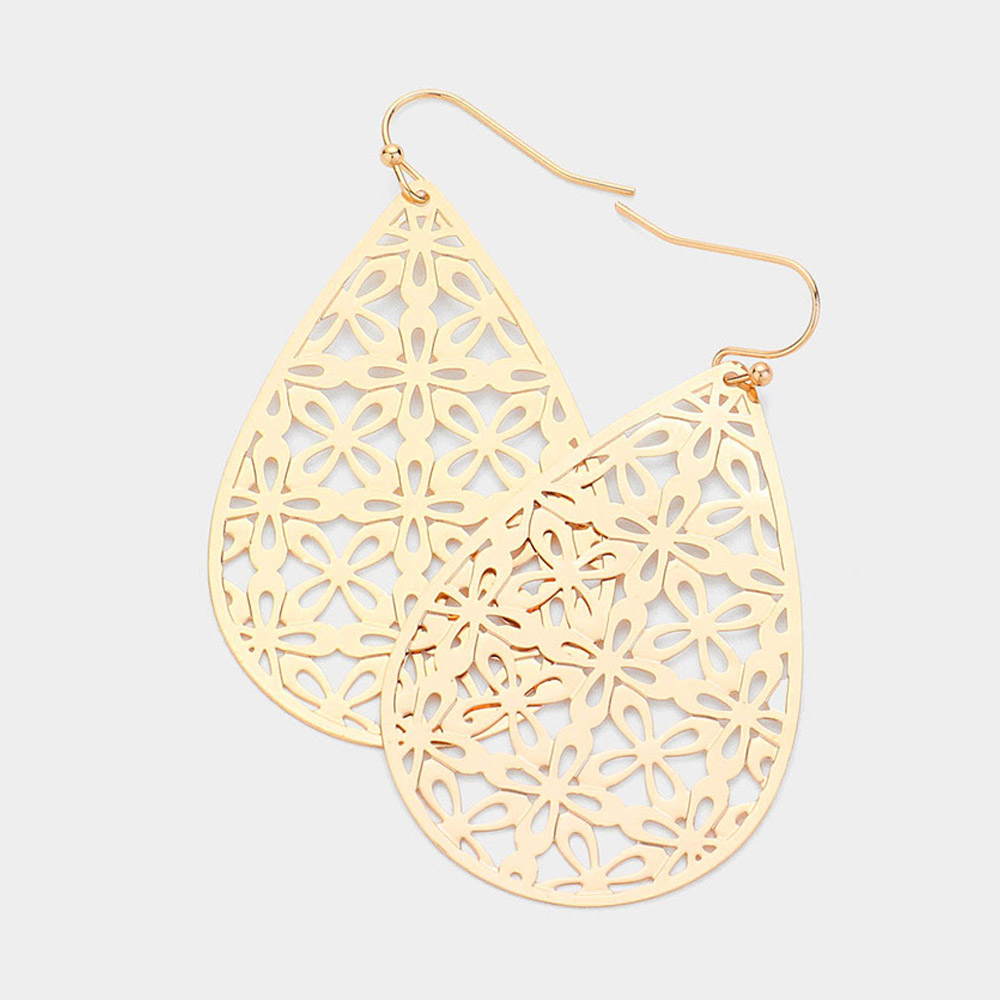 Abstract Pattern Teardrop Metal Filigree Dangle Earrings