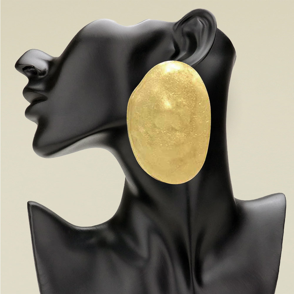 Bold Brushed Hammered Metal Abstract Oval Plate Statement Earrings Bold Brushed Hammered Metal Abstract Oval Plate Statement Earrings