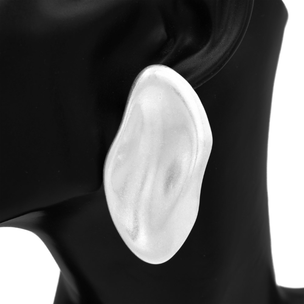 Bold Brushed Metal Sculpted Oval Plate Statement Earrings