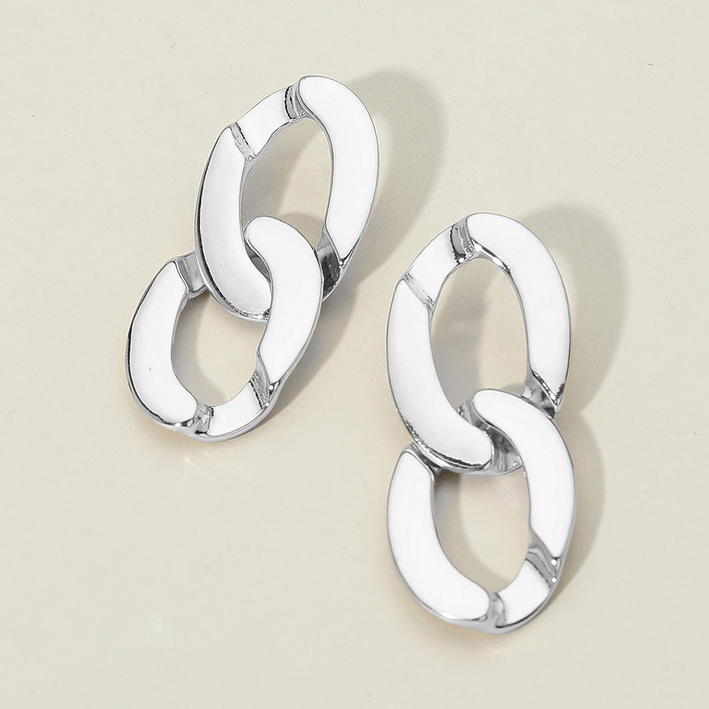 • Bold linked drop earrings featuring a smooth, rounded chain design that adds modern edge and statement appeal. The interlocking silhouette creates fluid movement while maintaining a clean look, making these earrings ideal for everyday wear, trend-driven outfits, or elevated styling moments.