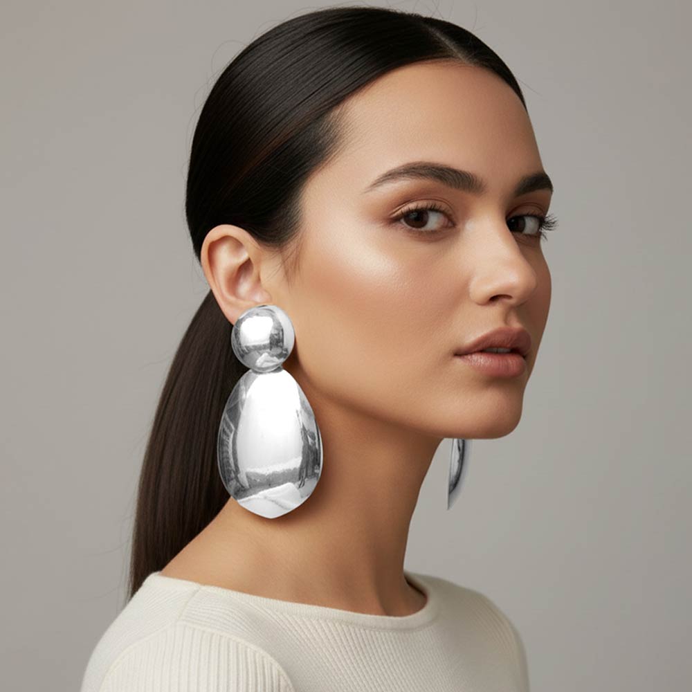 • Bold statement stud earring featuring a sculptural drop silhouette with an organic shape. Designed to add dramatic impact and modern elegance to any look, this eye-catching piece is perfect for boutique assortments, special occasions, and standout styling.