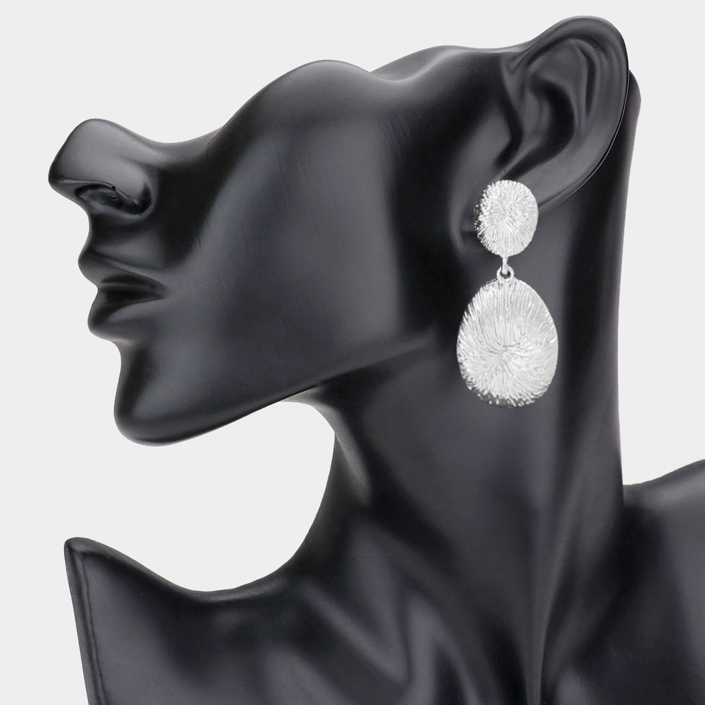 • Elevate any look with these textured disc drop earrings featuring a bold, sculptural silhouette that adds modern artistic flair. Their dimensional design creates eye-catching movement, making them a standout accessory perfect for both everyday outfits and elevated occasions.