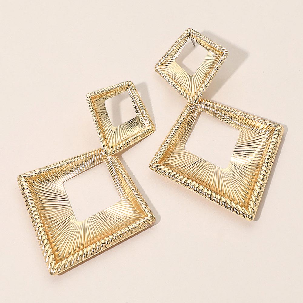 Bold Textured Metal Geometric Open Square Drop Statement Earrings