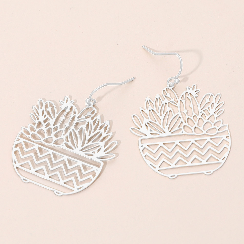 Brass Metal Botanical Planter Cutout Dangle Earrings