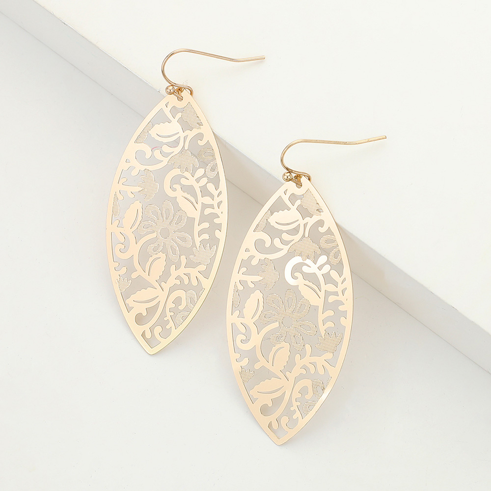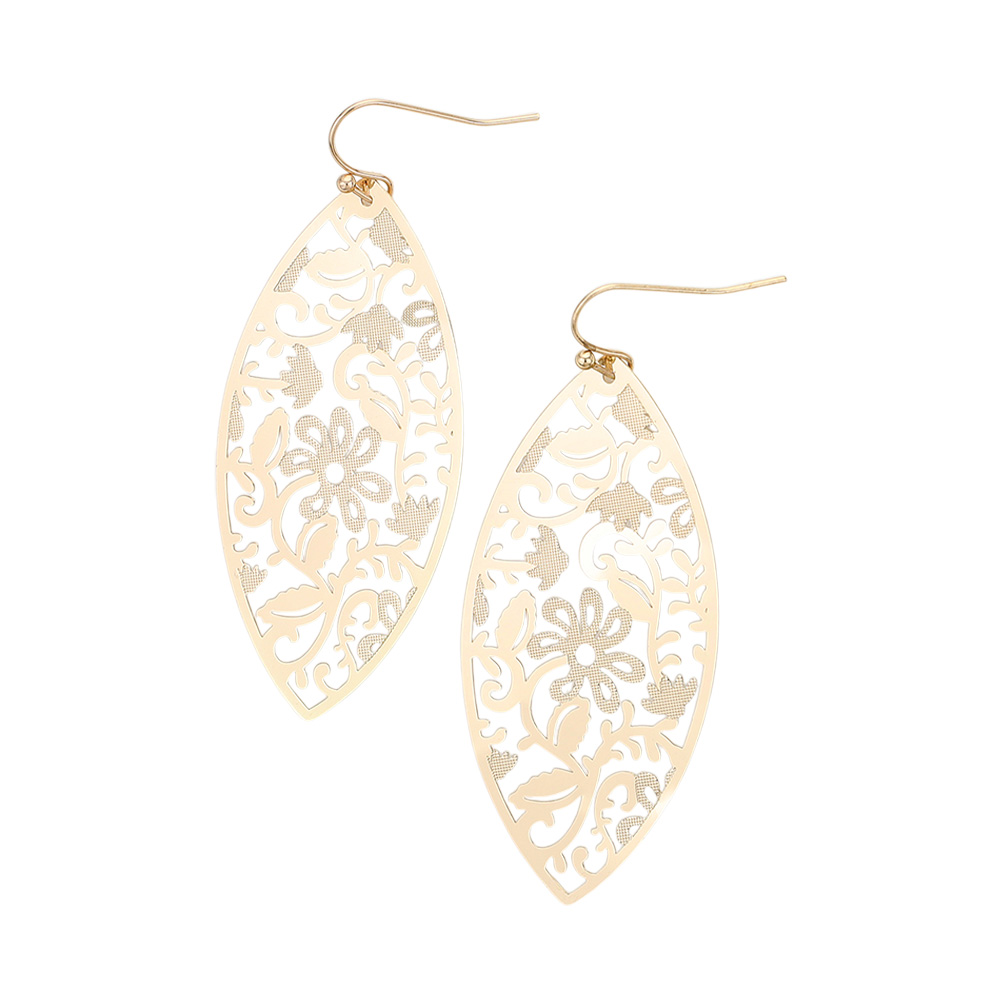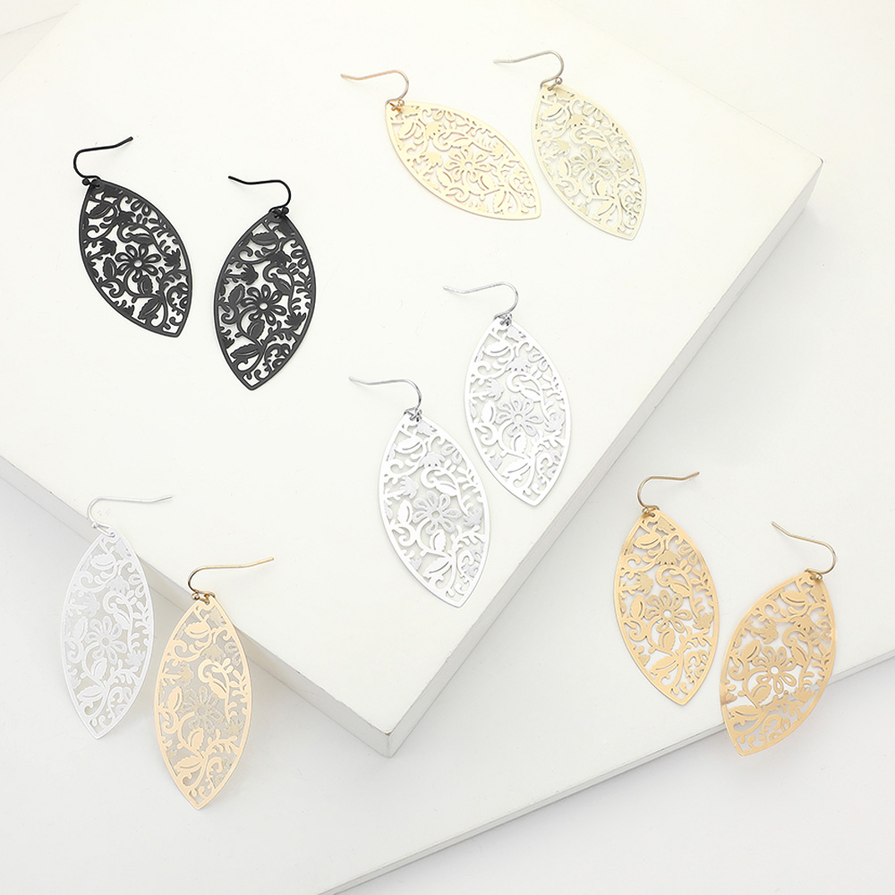 Leather Trim Filigree Metal Diamond Shaped Dangle Earrings