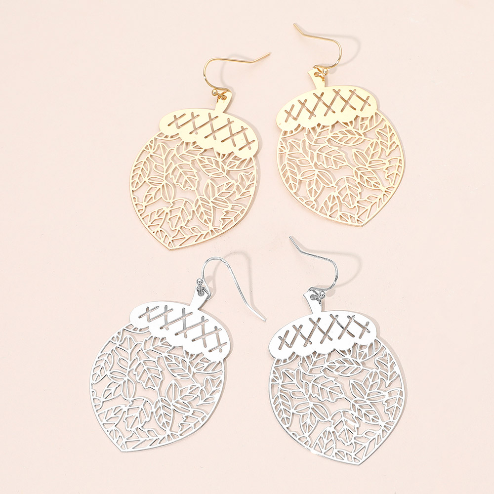 Brass Metal Leafy Acorn Cutout Dangle Earrings Brass Metal Leafy Acorn Cutout Dangle Earrings Brass Metal Leafy Acorn Cutout Dangle Earrings