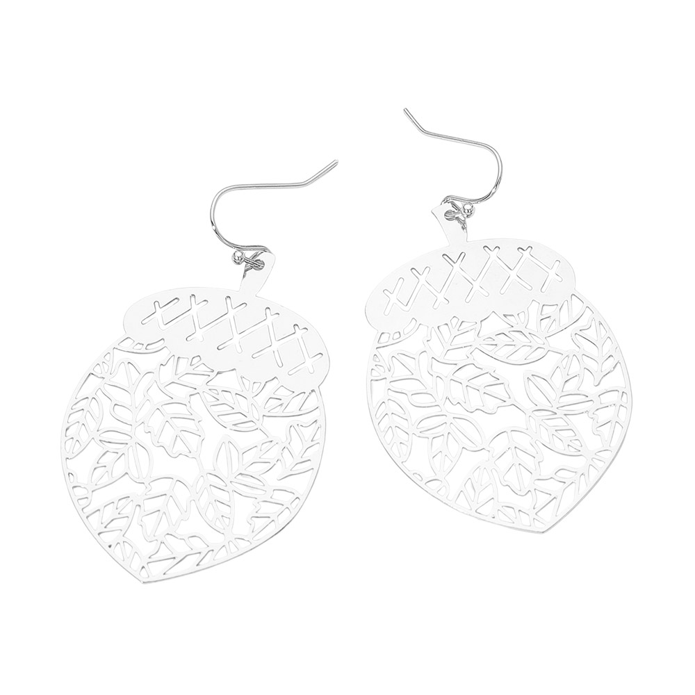• Add a touch of woodland charm with these leafy acorn cutout drop earrings. Designed with intricate leaf patterns and a delicate acorn silhouette, they bring nature-inspired elegance to any outfit. Perfect for casual wear or dressing up with a whimsical and stylish flair.