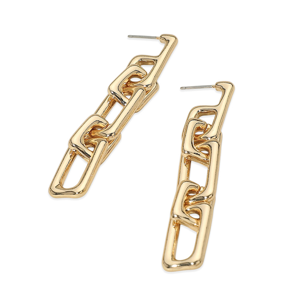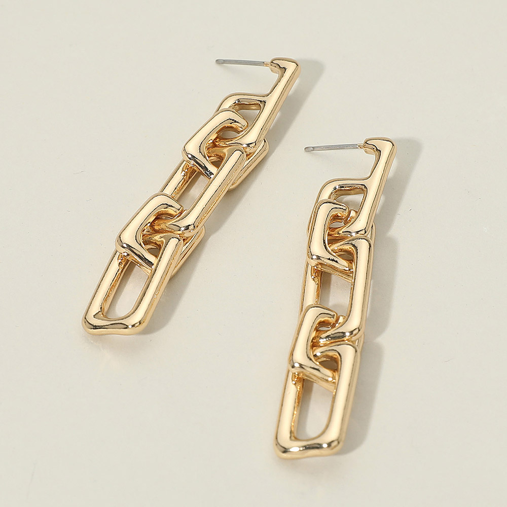 • Statement drop earrings designed with elongated chain links for a sleek, modern silhouette. The linear structure adds bold movement and visual interest while remaining versatile for everyday styling, fashion-forward outfits, or elevated looks that call for clean lines and contemporary edge.