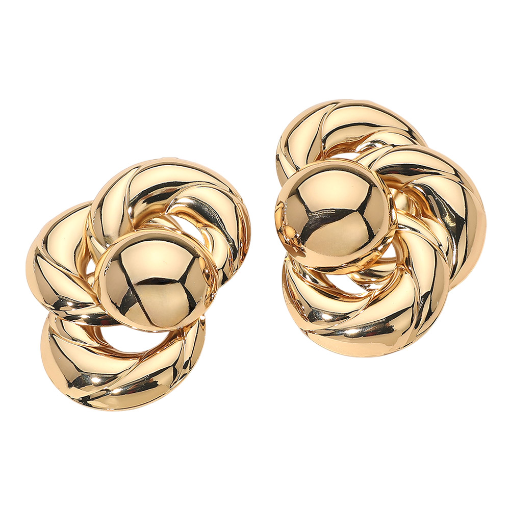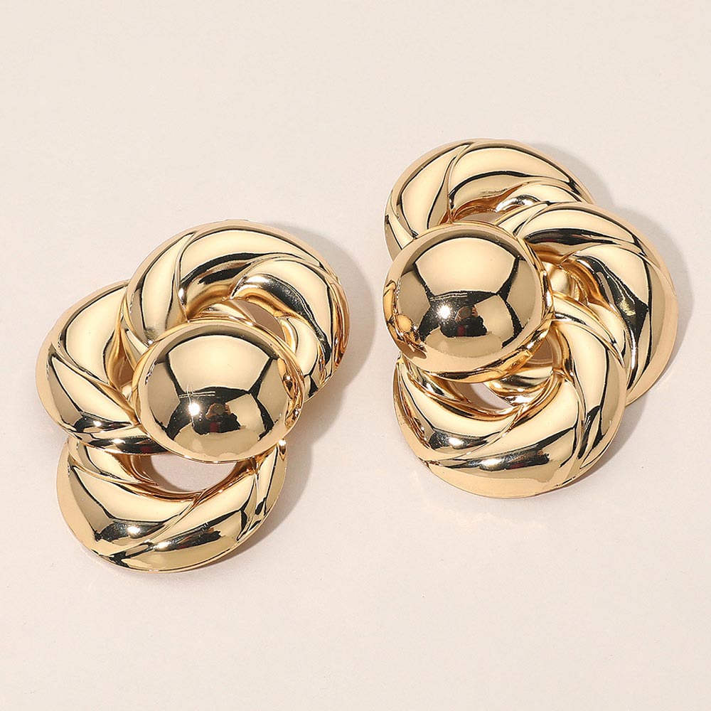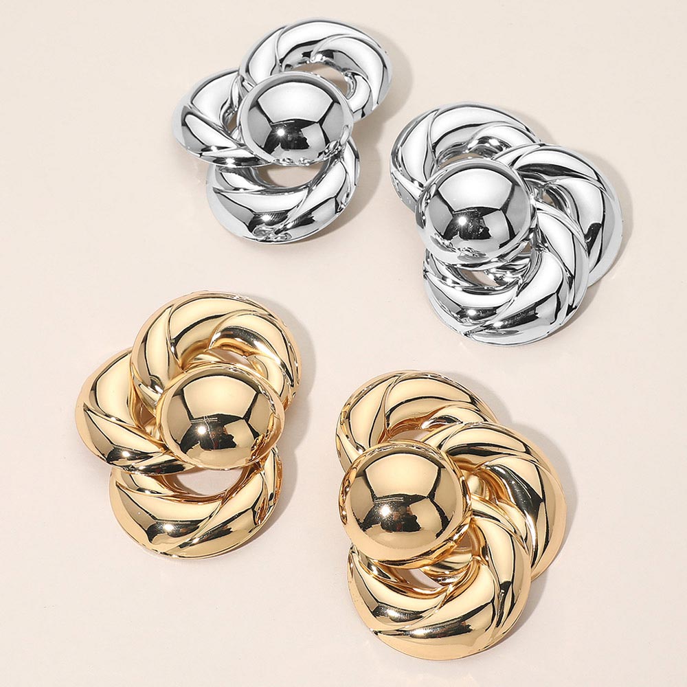 Details • Size : 2" X 3" • Post Back • Bold knot-inspired stud earrings designed with sculptural volume and a smooth high-impact silhouette. These statement studs offer a modern polished look that elevates everyday outfits, workwear, and evening styling. Ideal for trend-forward collections, gift assortments, and customers seeking timeless statement earrings with confident presence. • Lead and Nickel Compliant