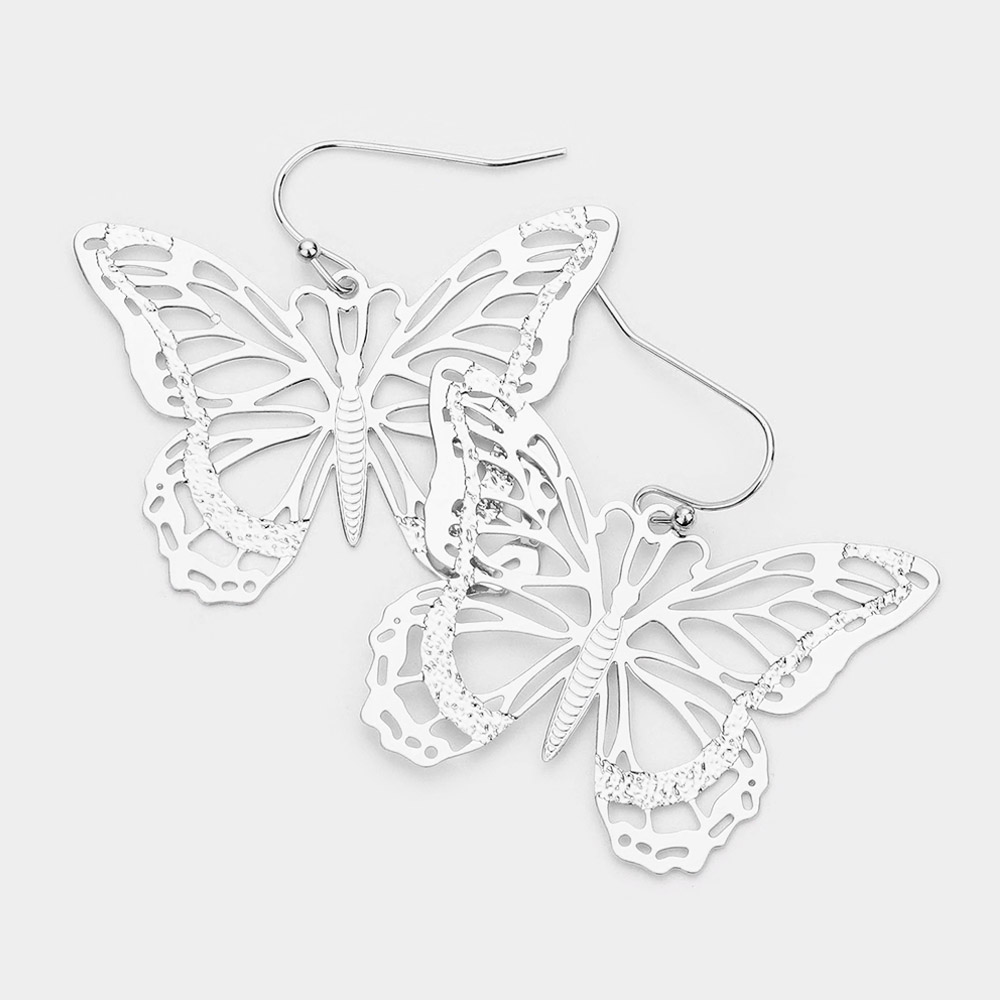 Cut Out Brass Metal Butterfly Dangle Earrings