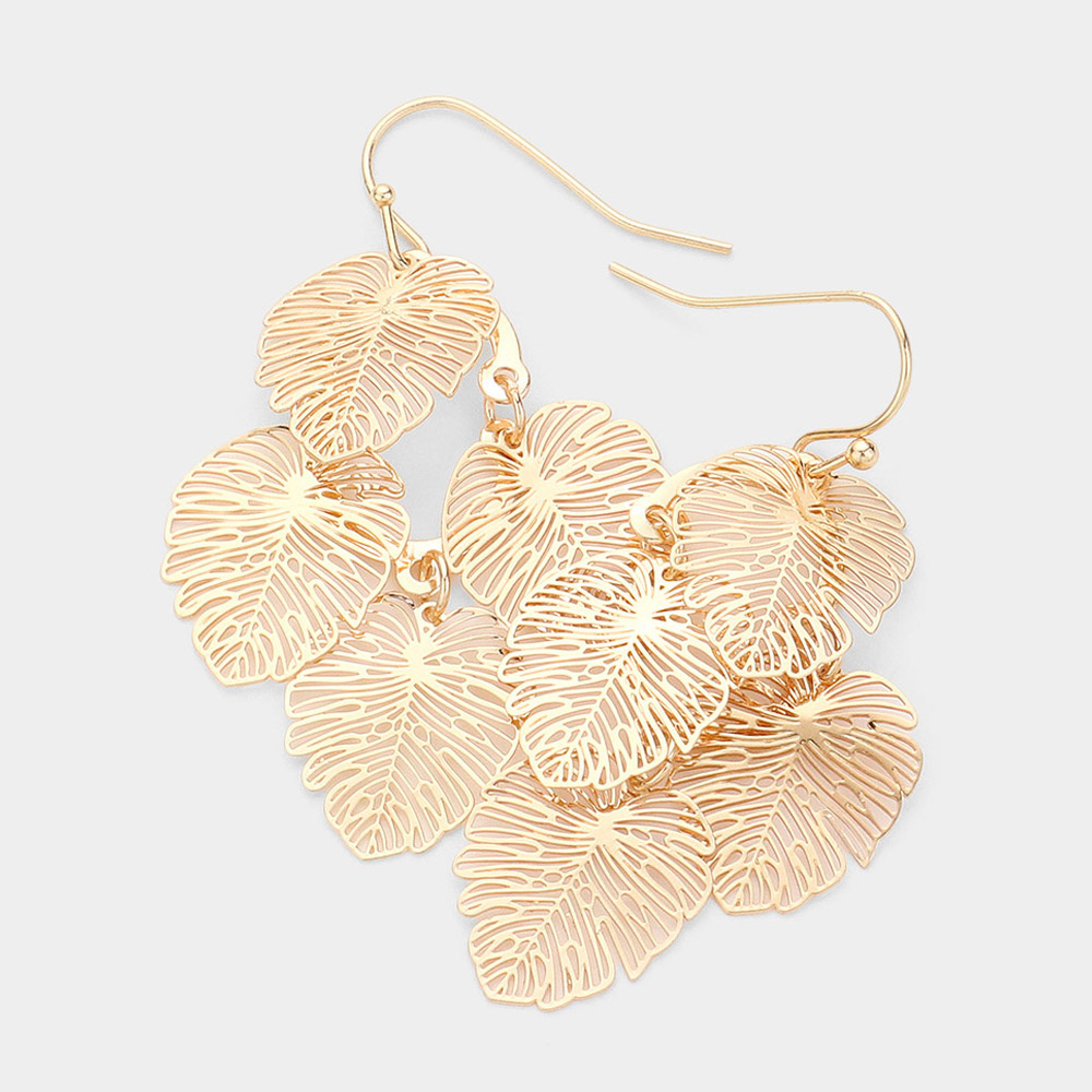 Square Stone Accented Metal Teardrop Snowflake Filigree Dangle Earrings