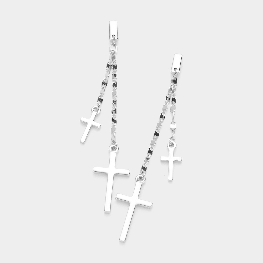 12PCS - Rhinestone Embellished Cross Charm Keychains