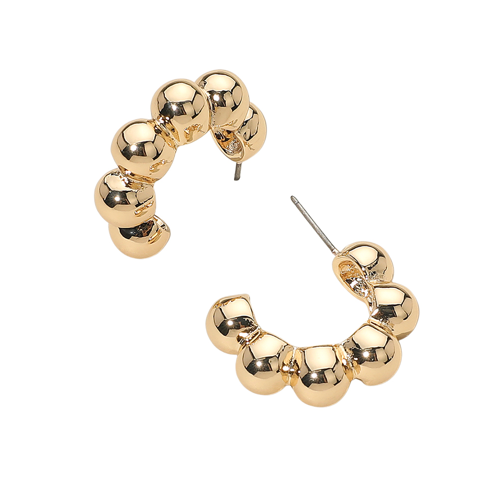 Details • Size : 1" X 1" X 0.3" • Post Back • Stylish beaded dome hoop stud earrings featuring a smooth, polished finish and rounded clustered design. Lightweight and modern, they add a chic touch to everyday and dressy outfits. Perfect for elevating any jewelry collection with a bold yet refined look. • Lead and Nickel Compliant • Made In Korea • Gold Dipped