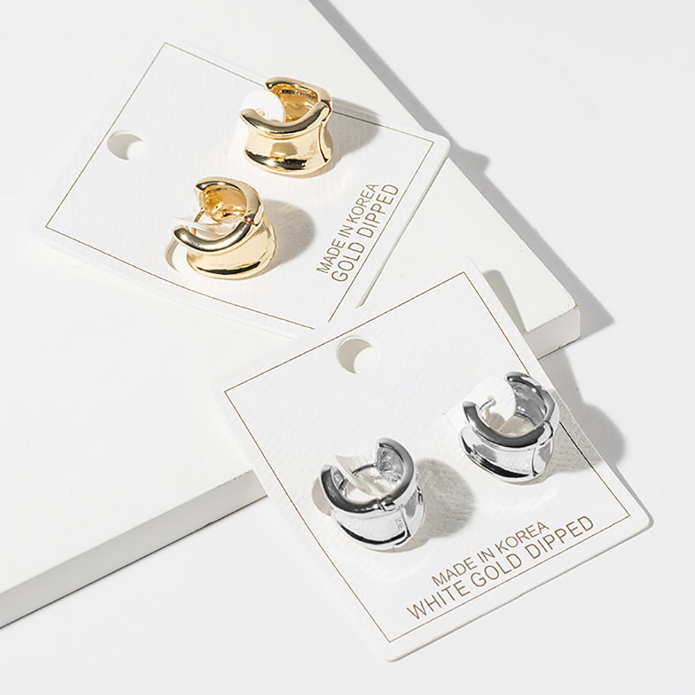 Details • Size : 0.6" X 0.6" X 0.5" • Huggie Back • Chic hoop stud earrings featuring a layered curved silhouette with smooth contours and a compact profile. Designed for effortless everyday wear, these versatile earrings add subtle dimension, modern elegance, and polished style to casual outfits, office looks, and curated accessory collections. • Gold Dipped • Lead and Nickel Compliant • Made In Korea