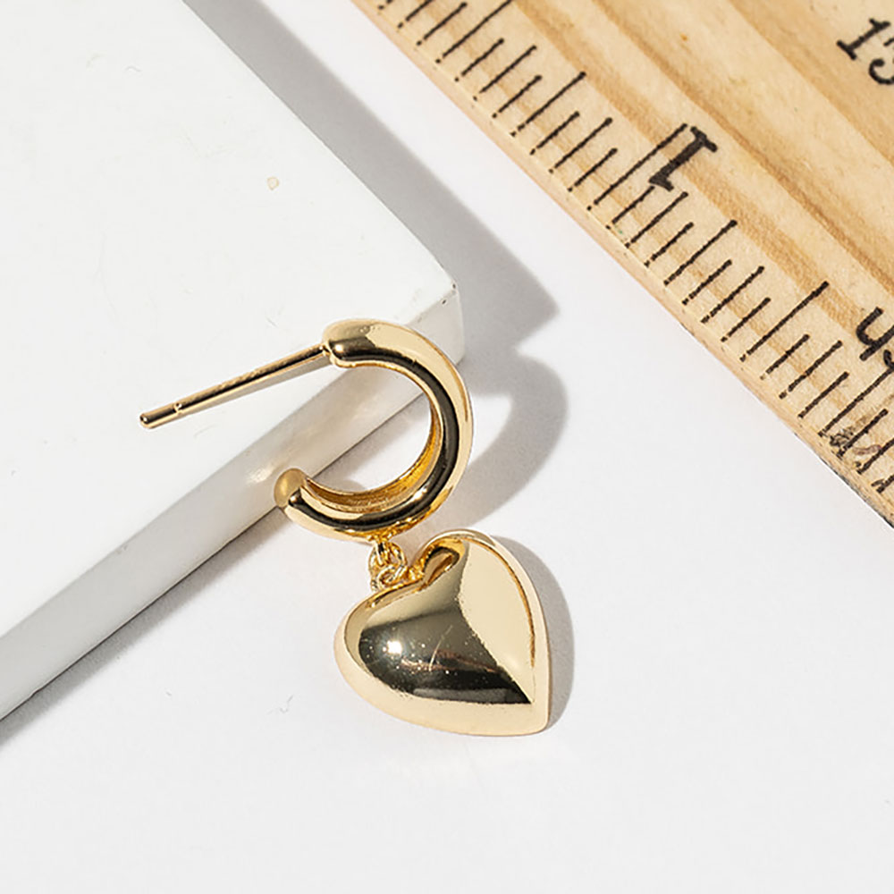 Gold Dipped Puffy Heart Drop Dangle Mini Hoop Earrings
