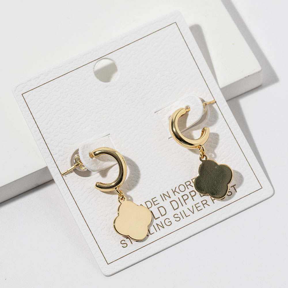 Gold Dipped Quatrefoil Charm Drop Dangle Mini Hoop Earrings