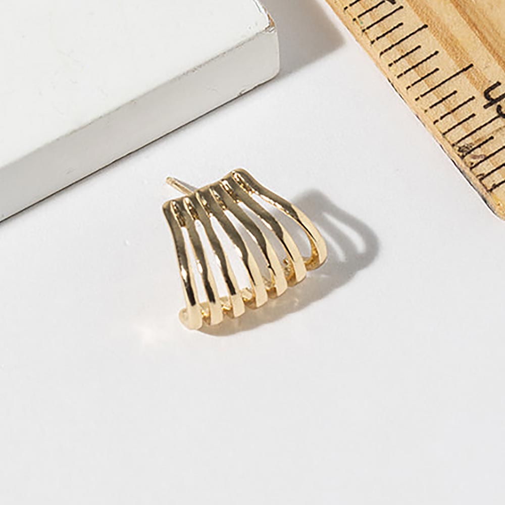 • Contemporary ear cuff style stud earrings designed with a layered ribbed silhouette that hugs the ear for a bold, sculptural look. This modern statement piece adds depth and texture while remaining easy to style for everyday wear or trend-focused fashion collections.