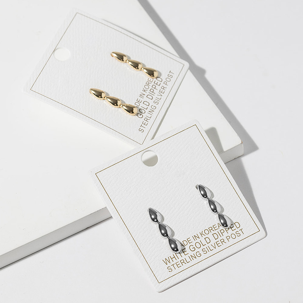 Details • Size : 0.2" X 0.9" • Elegant stud earrings featuring a sleek triple drop design with softly rounded shapes arranged in a vertical silhouette. Designed to add subtle movement and refined style, these studs are perfect for everyday wear, work outfits, and dressy occasions, offering modern simplicity and timeless appeal for any jewelry collection. • Gold Dipped • Lead and Nickel Compliant • Made In Korea • Sterling Silver Post