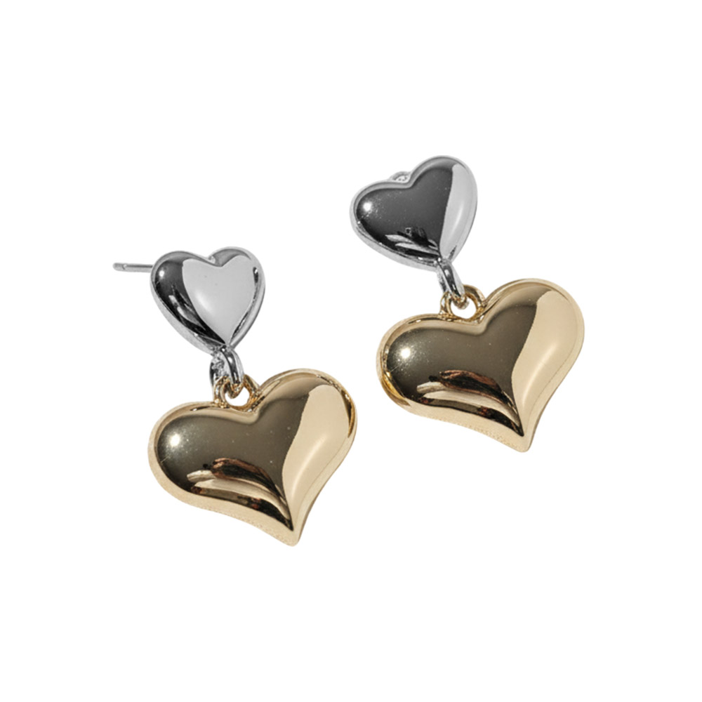 Details • Size : 0.8" X 1.3" • Double heart drop earrings designed with a sleek layered silhouette that adds dimension and shine. This romantic yet modern style offers effortless movement and visual impact, making it ideal for everyday wear, giftable assortments, and seasonal collections across boutiques and online stores. • Gold Dipped • Lead and Nickel Compliant • Made In Korea • Sterling Silver Post
