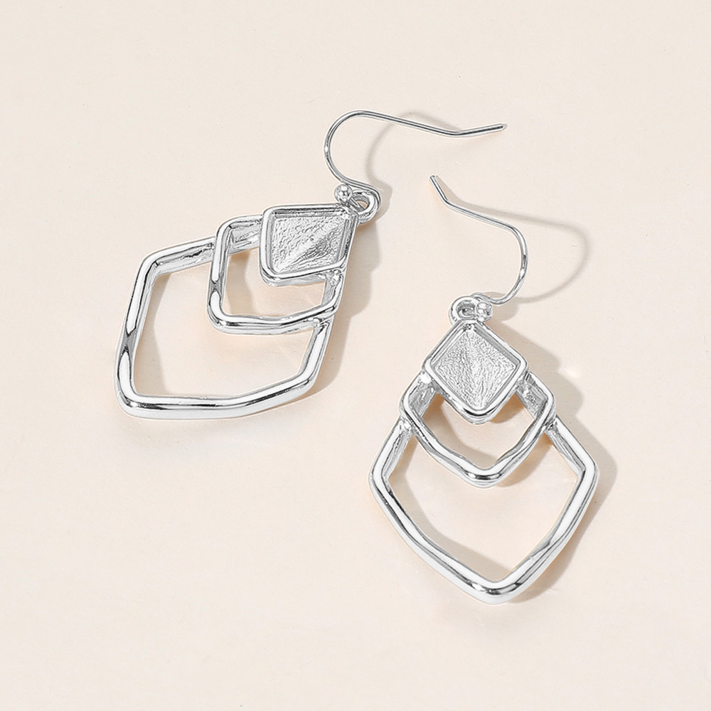 Frosted Brass Metal Rectangle Huggie Hoop Earrings