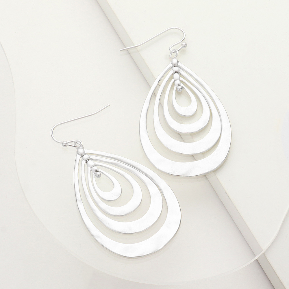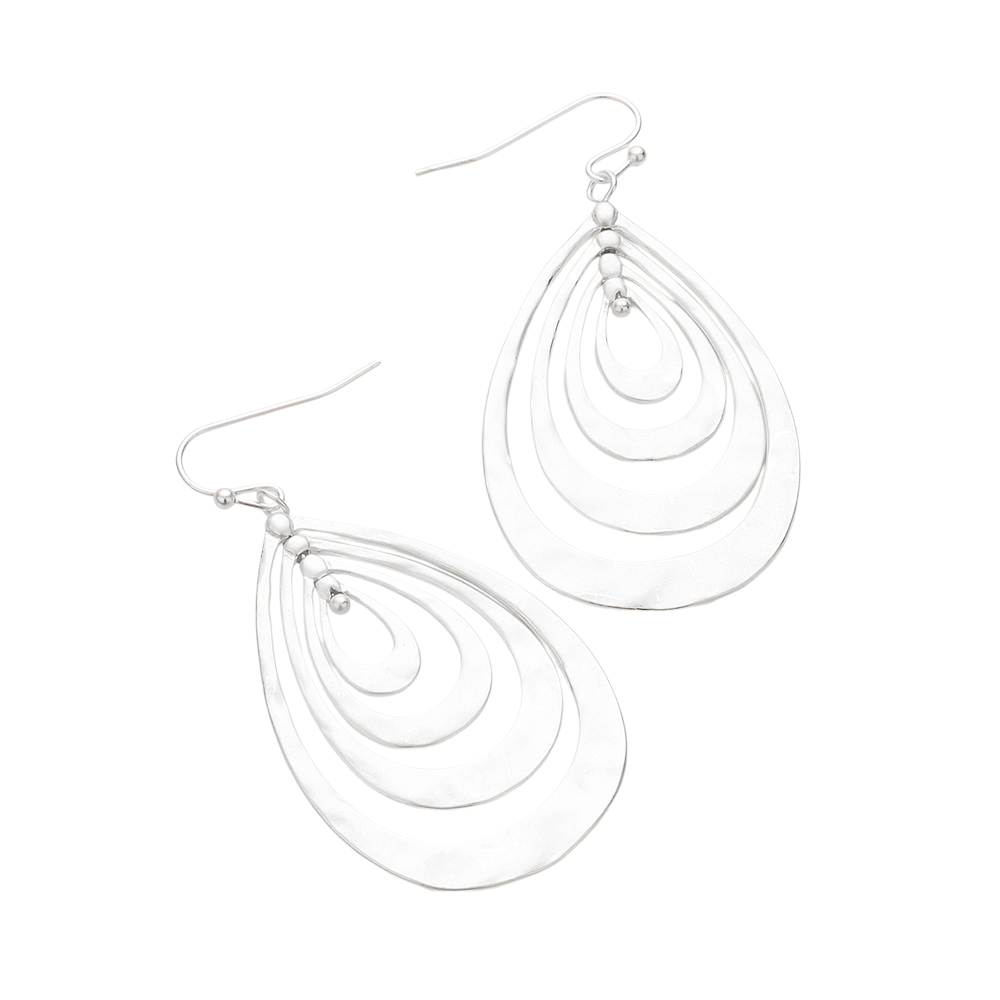 Hammered Metal Concentric Teardrop Dangle Earrings