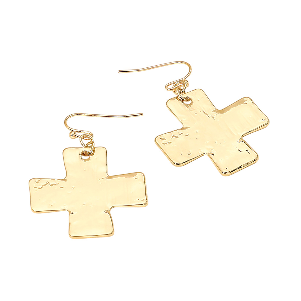 Hammered Metal Cross Dangle Earrings Hammered Metal Cross Dangle Earrings