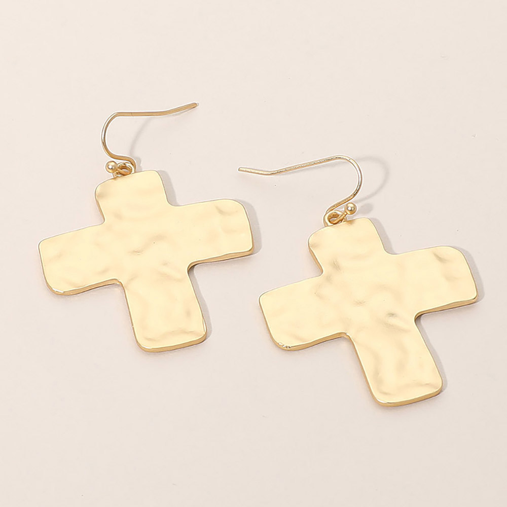 Details • Size : 1.4" X 1.8" • Fish Hook Back • These cross drop earrings feature a softly textured silhouette with a timeless, faith-inspired design that adds meaning and style to everyday looks. Lightweight and easy to wear, they are ideal for boutique collections, gift selections, and customers seeking classic symbolic accessories. • Lead and Nickel Compliant
