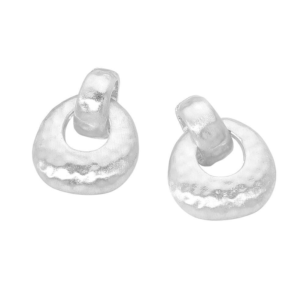 Details • Size : 0.9" X 1.1" • Post Back • Modern interlocking hoop drop door knocker earrings with a softly textured finish that creates depth and a sculptural look. Designed for comfortable wear and subtle movement, this versatile style transitions effortlessly from casual outfits to elevated looks, making it an ideal addition to everyday jewelry assortments and gift-ready boutique collections. • Lead and Nickel Compliant