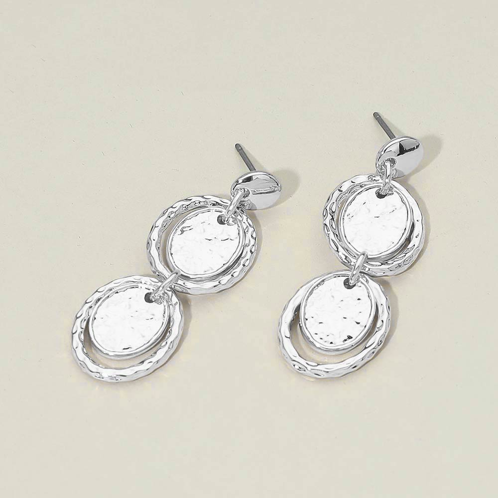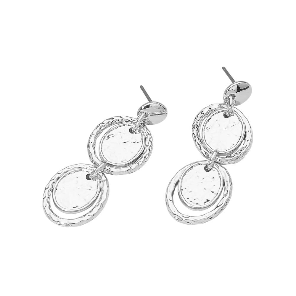 Hammered Metal Layered Oval Disc Link Drop Earrings