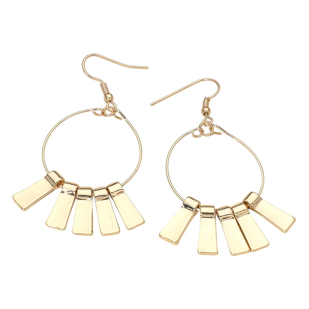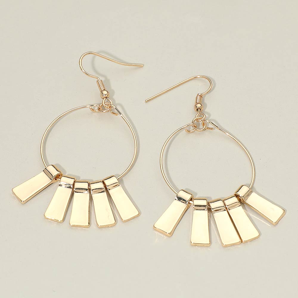 Details • Size : 1.25" X 2.4" • Fish Hook Back • Make a statement with these fringe bar hoop drop earrings featuring a circular frame accented by dangling bar details. Designed to add movement and visual interest, they bring a modern yet playful touch to everyday outfits or dressed-up looks. Lightweight and easy to wear, this design offers balance between bold shape and clean lines, making it ideal for trend-focused collections, gifting, and versatile styling across seasons. • Lead and Nickel Compliant