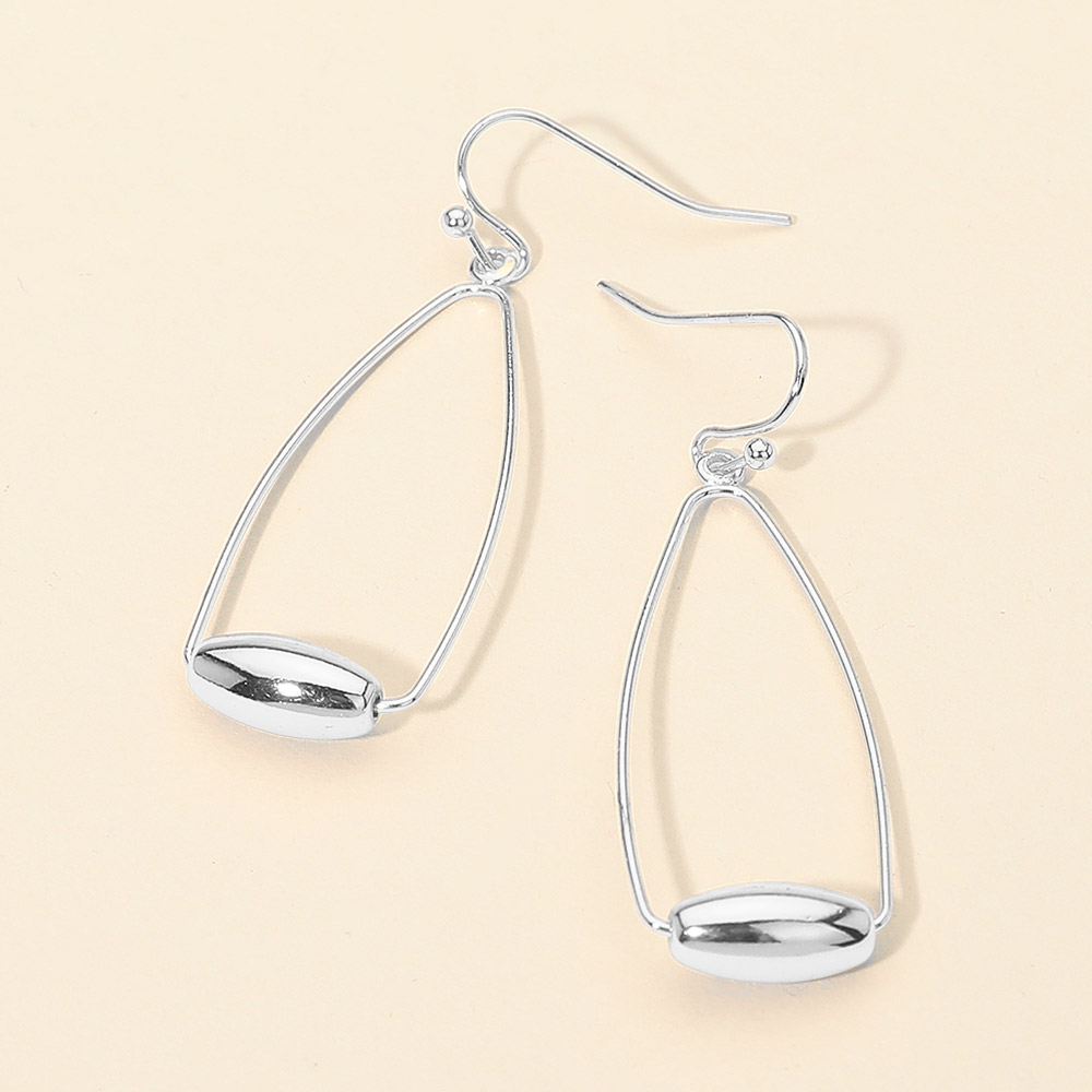 Metal Bead Accent Teardrop Wire Frame Drop Earrings