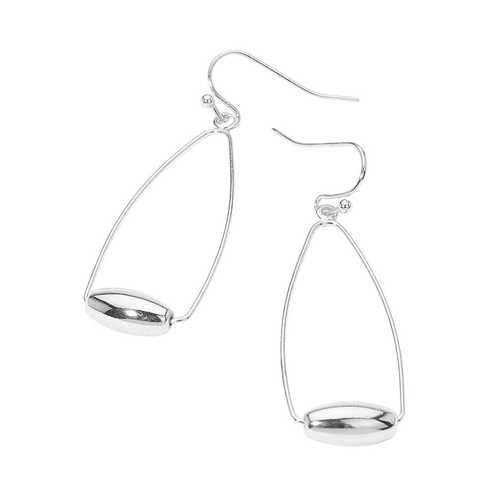 Metal Bead Accent Teardrop Wire Frame Drop Earrings Metal Bead Accent Teardrop Wire Frame Drop Earrings