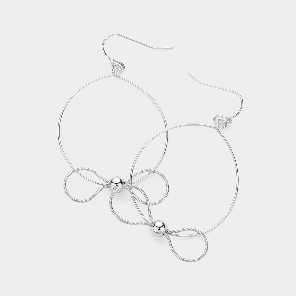 Metal Bow Pointed Open Wire Circle Dangle Earrings