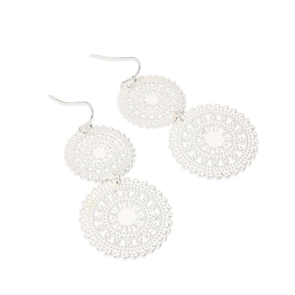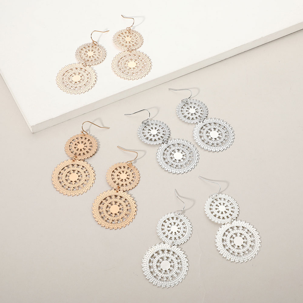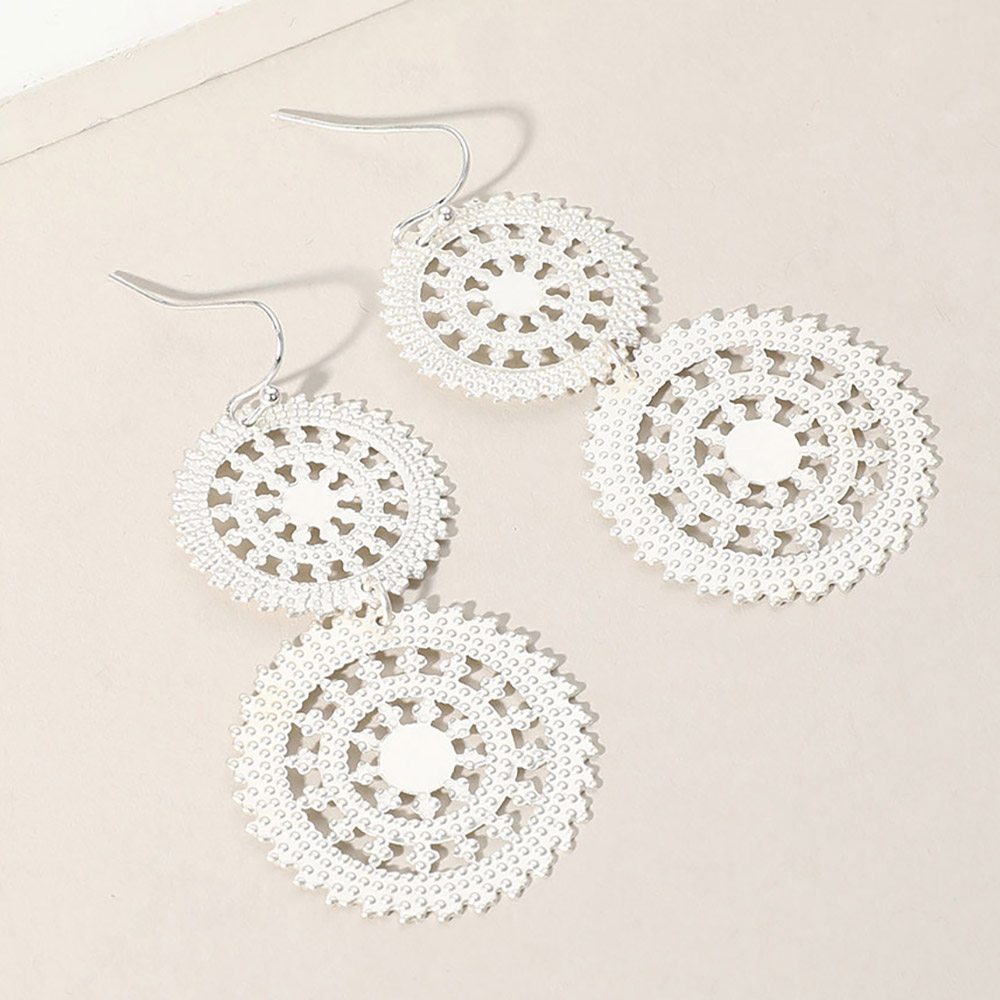 Metal Double Wheel Drop Filigree Earrings