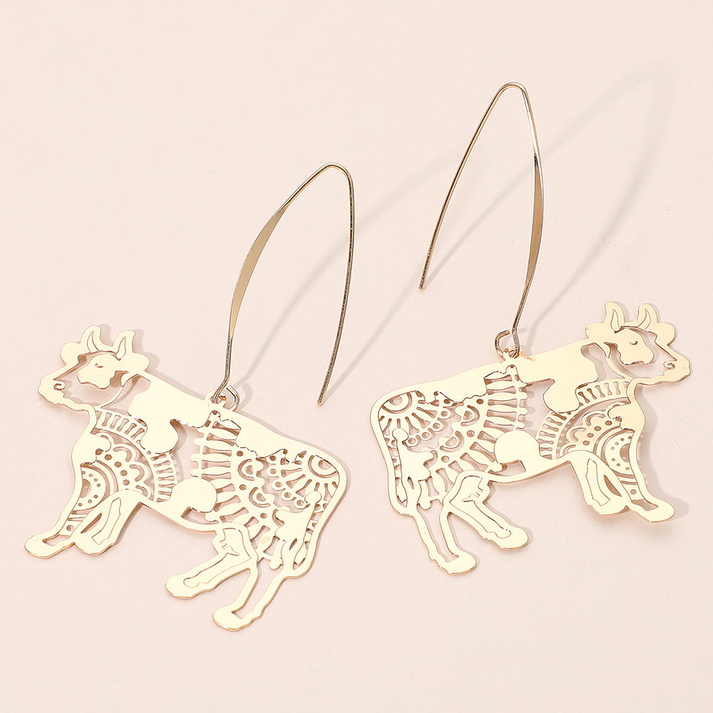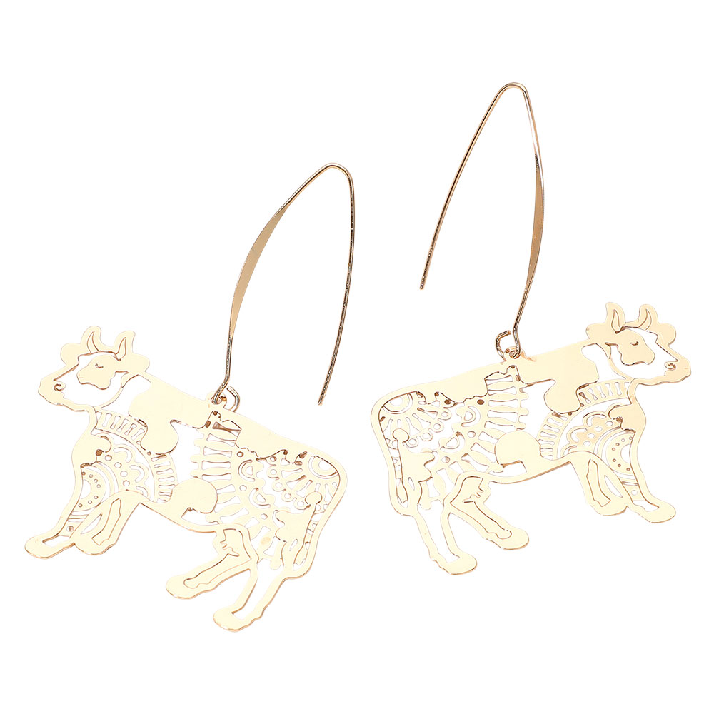 Metal Filigree Cow Dangle Earrings Metal Filigree Cow Dangle Earrings