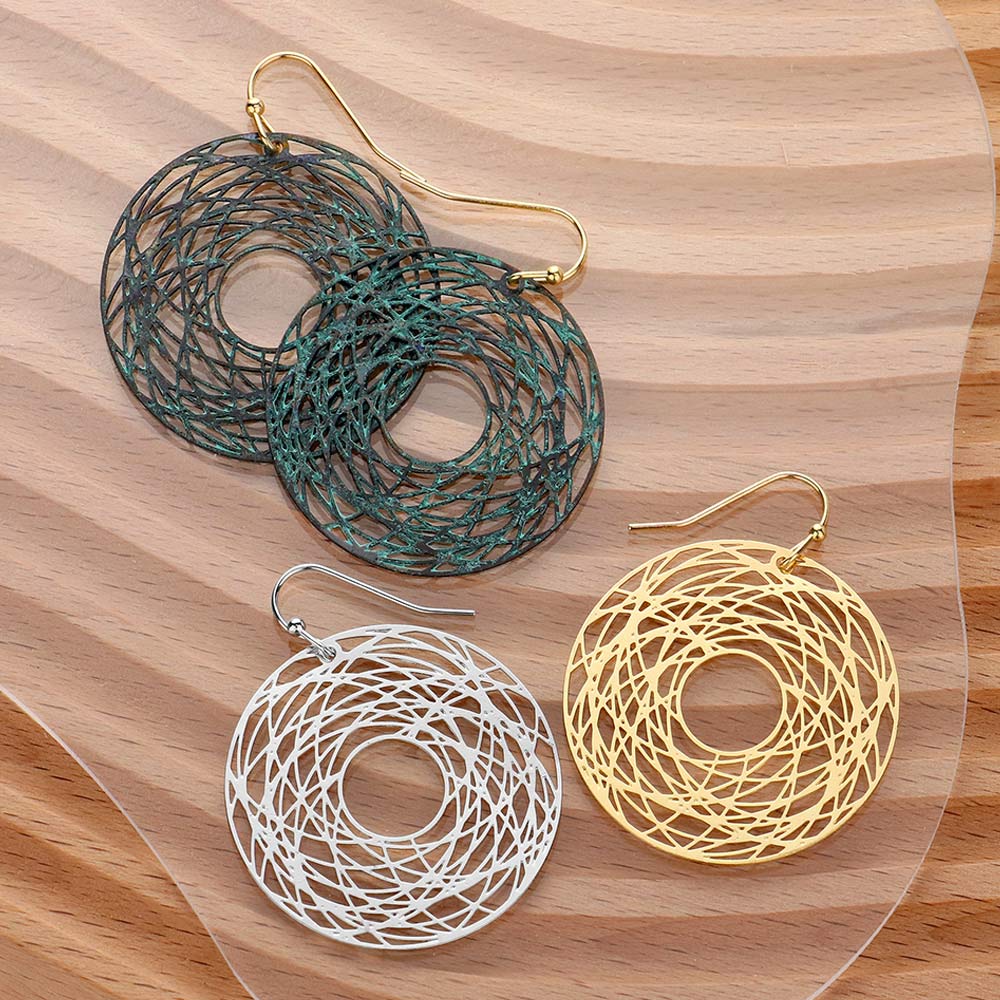 Metal Filigree Double Leaves Drop Dangle Earrings