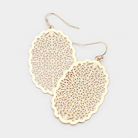 Brass Metal Filigree Abstract Oval Dangle Earrings