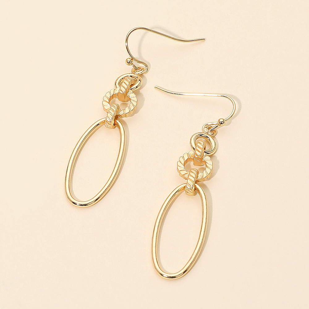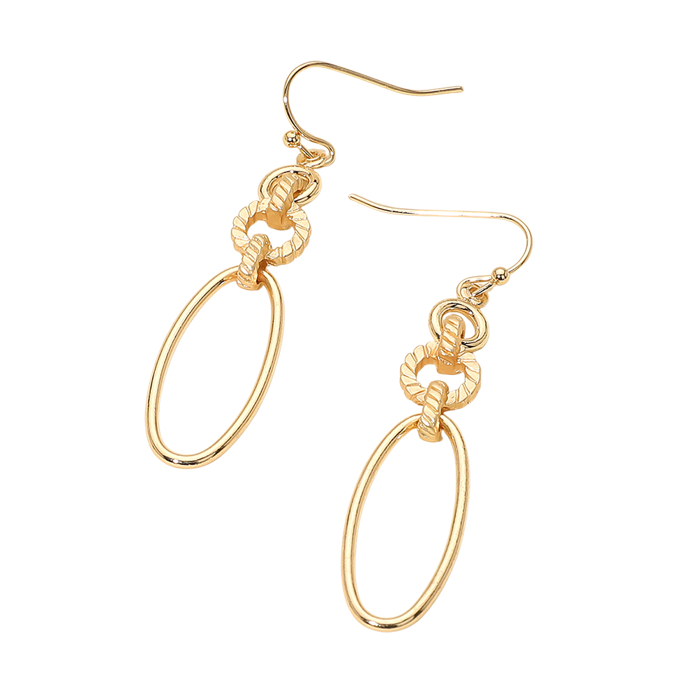 Details • Size : 0.5" X 2.25" • Fish Hook Back • Elevate any look with these metal oval drop earrings featuring textured accents and fluid linked shapes. Their lightweight, elegant design offers versatile styling for both casual days and refined evenings, adding a polished, modern touch to your accessory collection. • Lead and Nickel Compliant