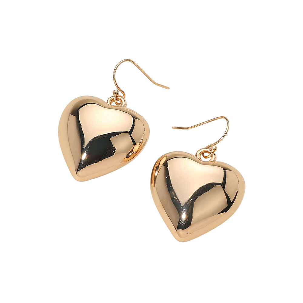 Metal Puffy Heart Dangle Earrings Metal Puffy Heart Dangle Earrings