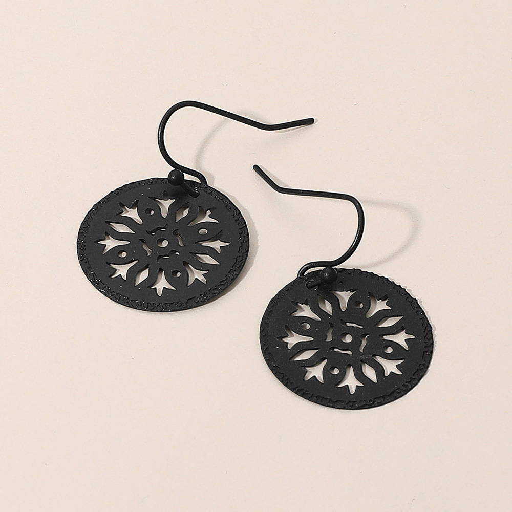 • Elegant round drop earrings featuring a delicate cutout snowflake design. Lightweight and versatile, these earrings bring a festive yet timeless charm to any look, perfect for casual outings, holiday gatherings, or gifting.