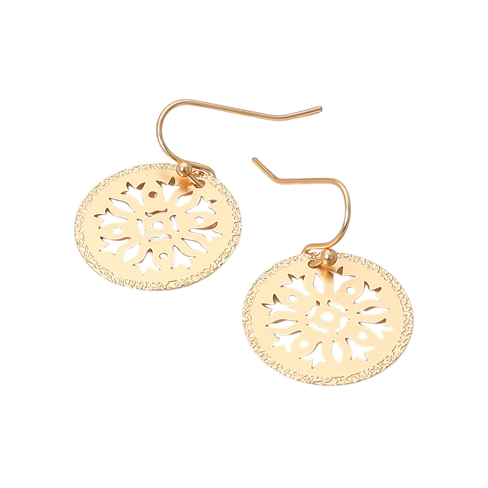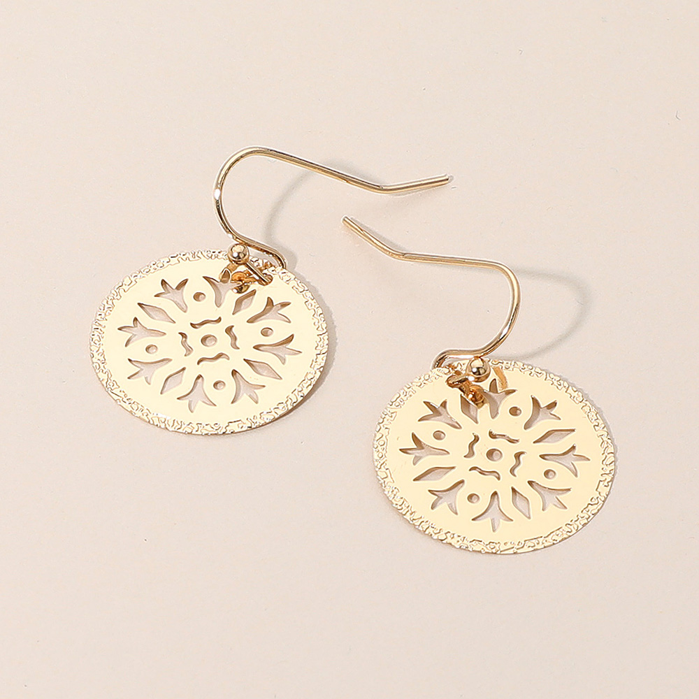 • Elegant round drop earrings featuring a delicate cutout snowflake design. Lightweight and versatile, these earrings bring a festive yet timeless charm to any look, perfect for casual outings, holiday gatherings, or gifting.