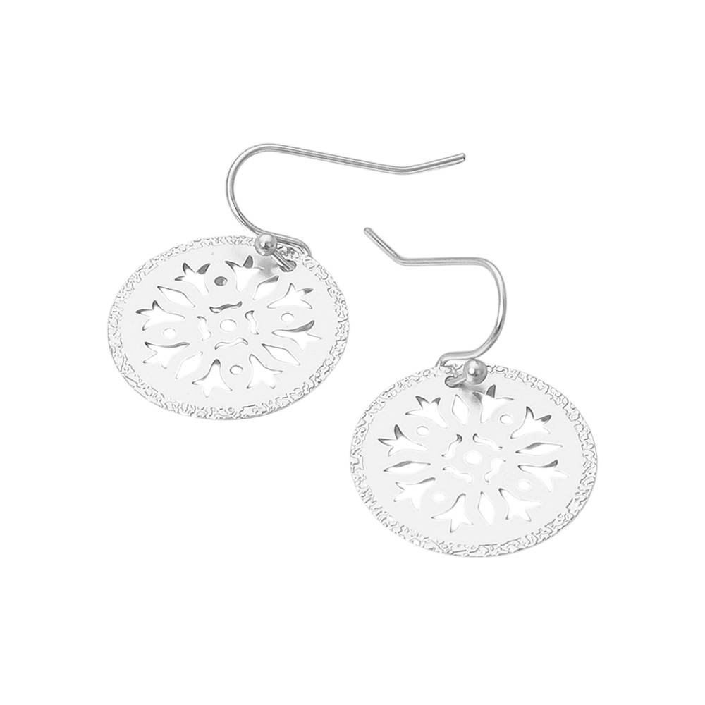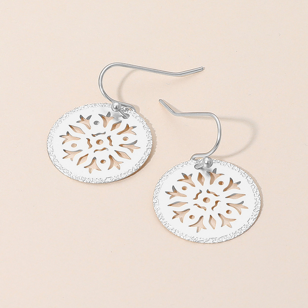 • Elegant round drop earrings featuring a delicate cutout snowflake design. Lightweight and versatile, these earrings bring a festive yet timeless charm to any look, perfect for casual outings, holiday gatherings, or gifting.