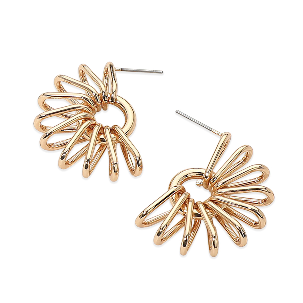 Details • Size : 1" X 1.25" • Post Back • These fan shape statement stud earrings feature a bold openwork design that adds movement and modern flair to any look. Eye-catching yet wearable, they are ideal for boutique assortments, trend-focused collections, and customers seeking standout accessories for everyday or occasion styling. • Lead and Nickel Compliant