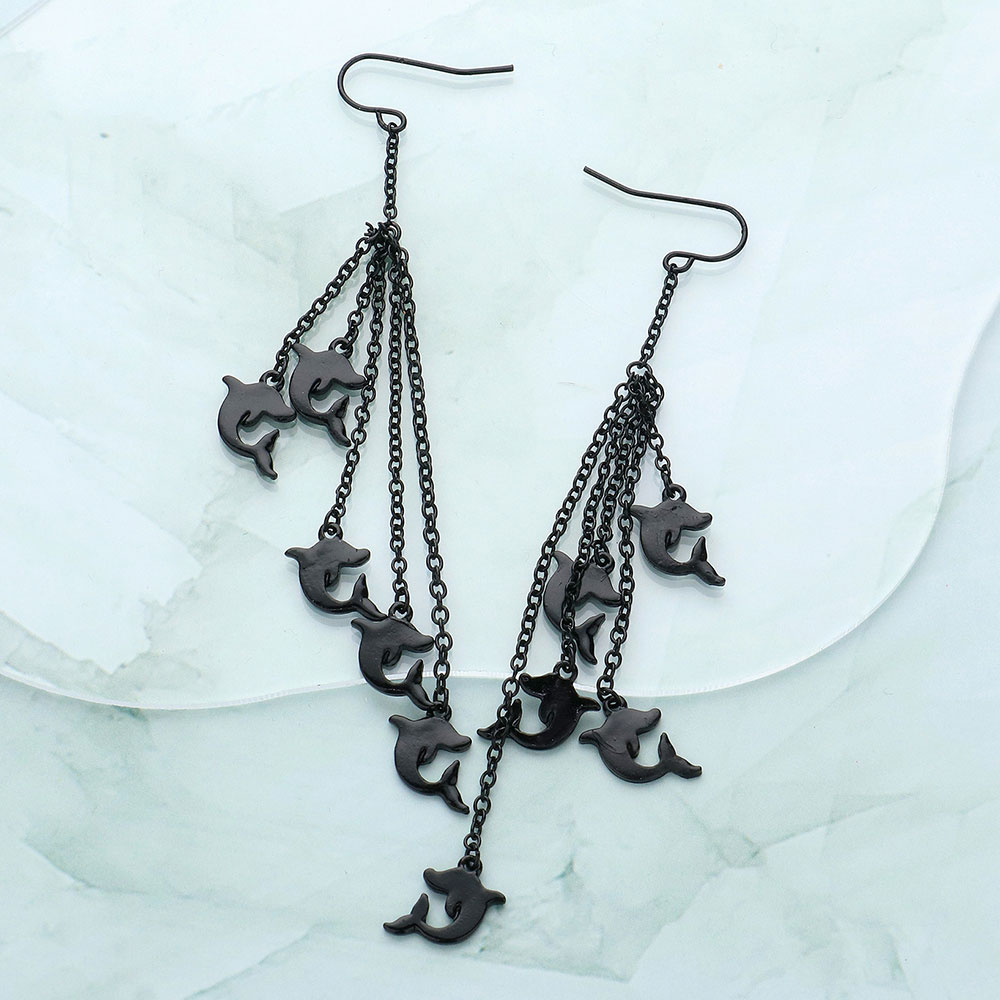 Multi Metal Dolphin Drop Chain Dangle Earrings