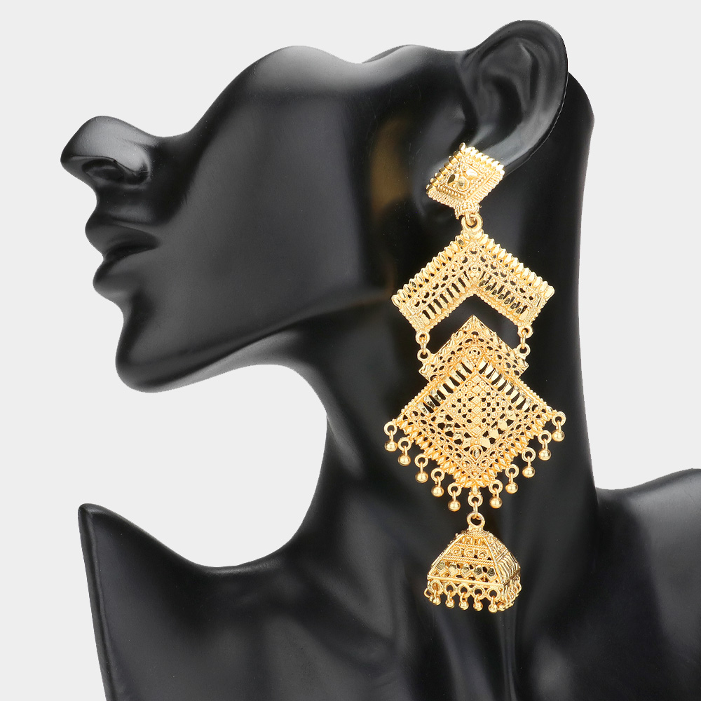 Oversized Abstract Metal Jhumka Dangle Earrings