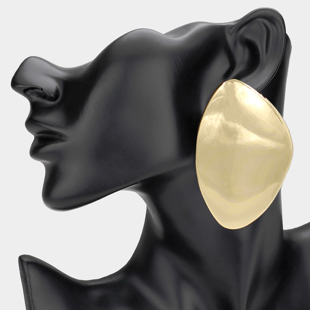 Oversized Brushed Metal Geometric Oval Earrings