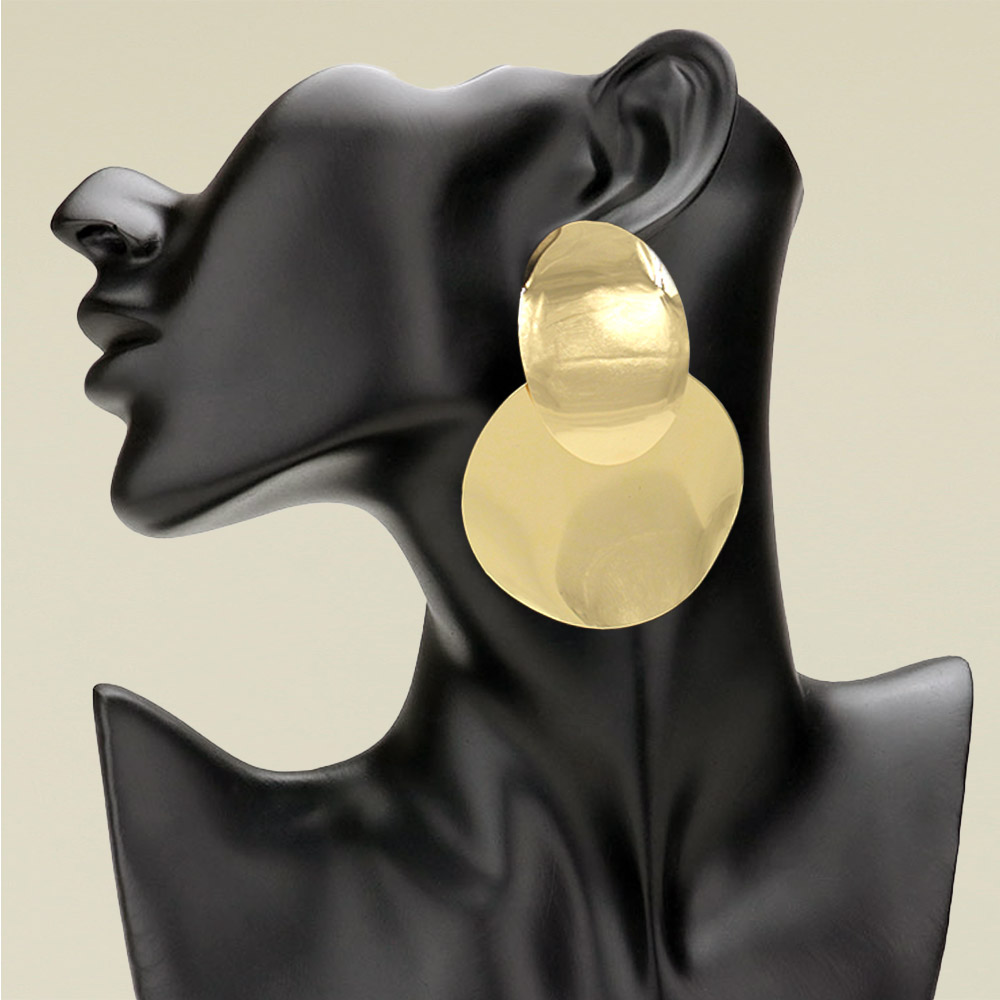 Oversized Layered Oval Plate Drop Statement Earrings